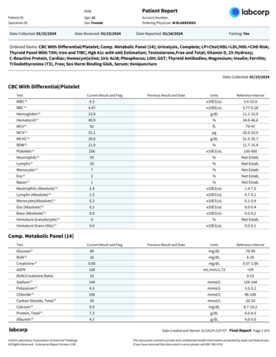 This lab panel is designed specifically for clients with acne as their #1 health concern. It includes key markers related to stress, blood sugar, hydration, hormones, possible infections, immune function, nutrient status, inflammation, and more — all of which can drive acne. This package includes your lab requisition form, a 60-minute Deep Dive Health Consultation with Lab Review, and a personalized protocol with lifestyle, nutrition, exercise, and supplement recommendations.