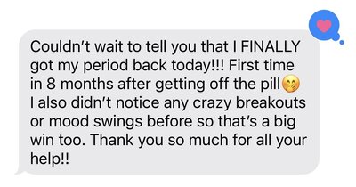 The biggest changes have been the decrease in inflammation, having a consistent cycle for the first time in 6 years, better energy throughout the day, sleeping through the night and waking up feeling rested, and FINALLY feeling like myself again!