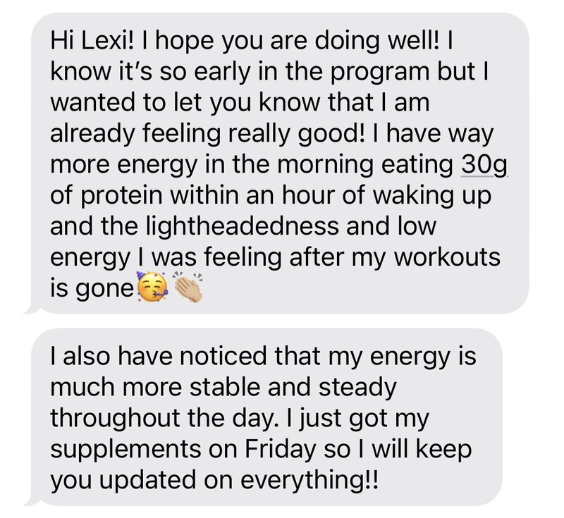 Investing in my health and working with Lexi has been the best thing I’ve done and I’m so grateful for all her help. Thank you Lexi!